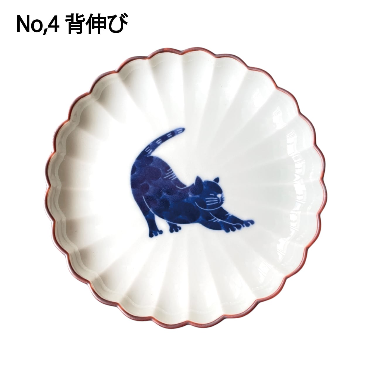 「 呉須猫 3,5寸菊割皿(約10.5cm) 4柄 」