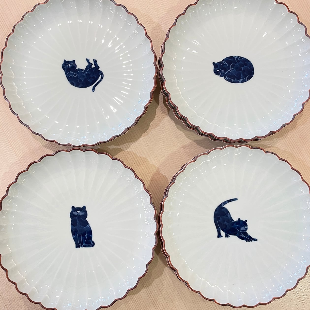 呉須猫の菊割皿(約10.5cm・4柄)|高山陶器・波佐見焼