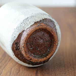 本作はその技法に加え、「氷雪白」と名付けられた釉薬が施され、しっとりとした白の中に繊細なひび模様(貫入)が浮かび上がっています。