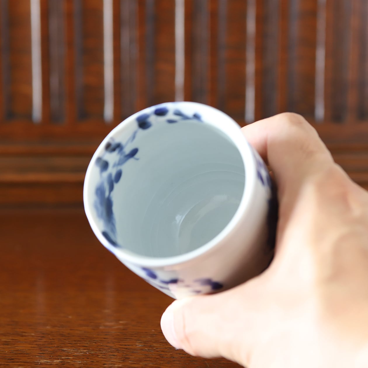 伝統的な染付の美と、動きのあるデザイン性を兼ね備えた松尾貞一郎さんの唐草文湯呑。手に取るたびに、日本磁器の洗練と作家ものの温かみを感じさせてくれる逸品です。
