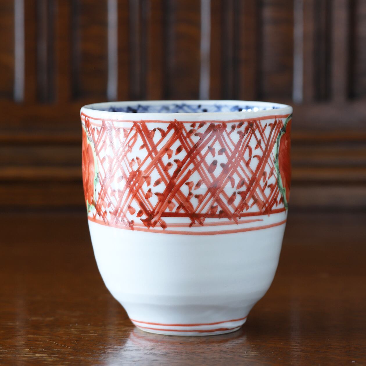 松尾貞一郎 作 有田焼 貞土窯 湯呑(赤絵地紋)|No,250205-A1