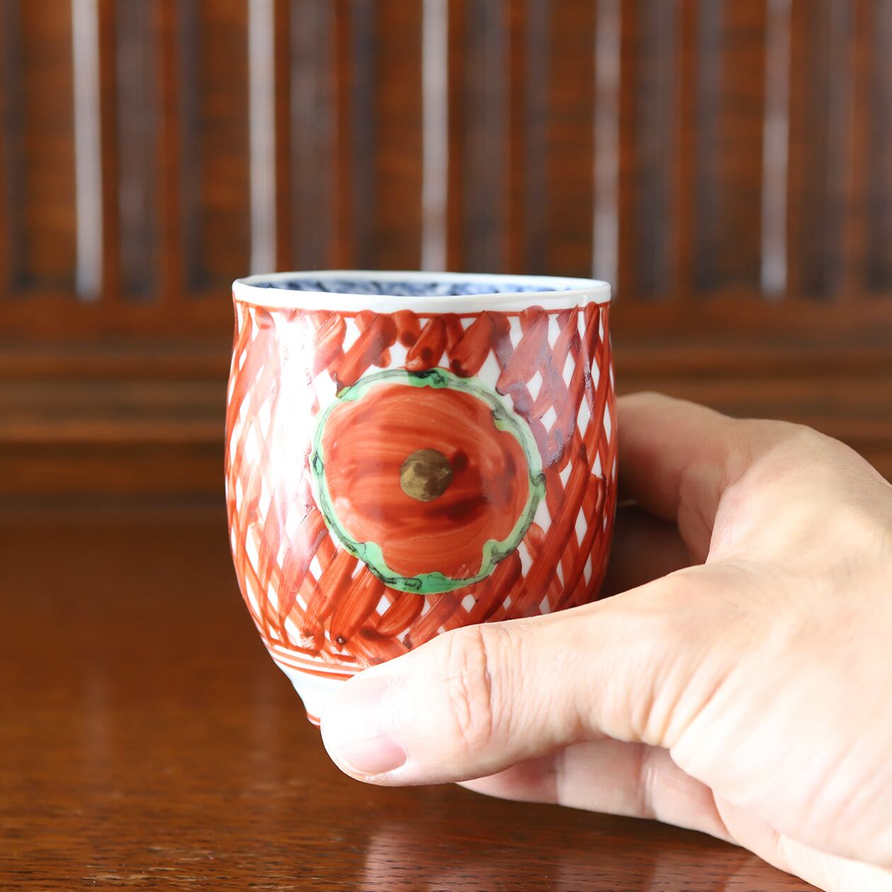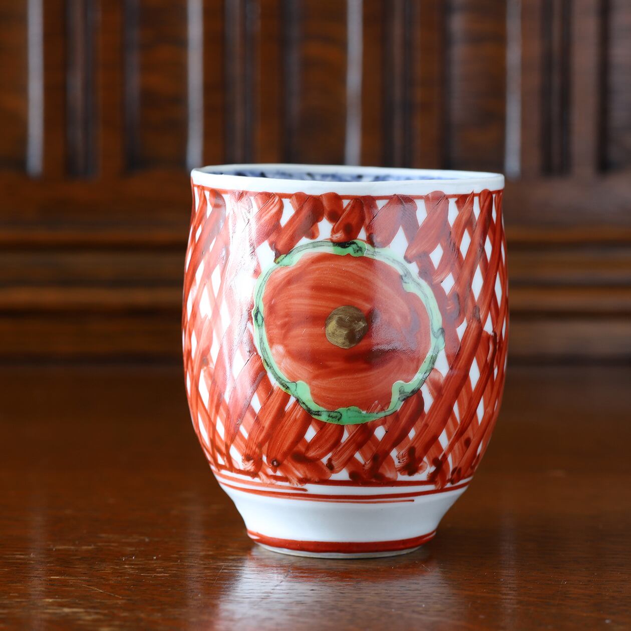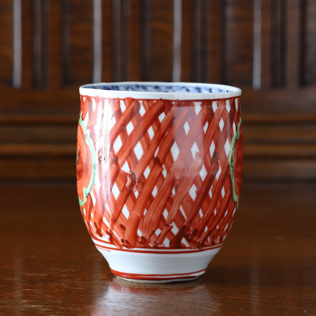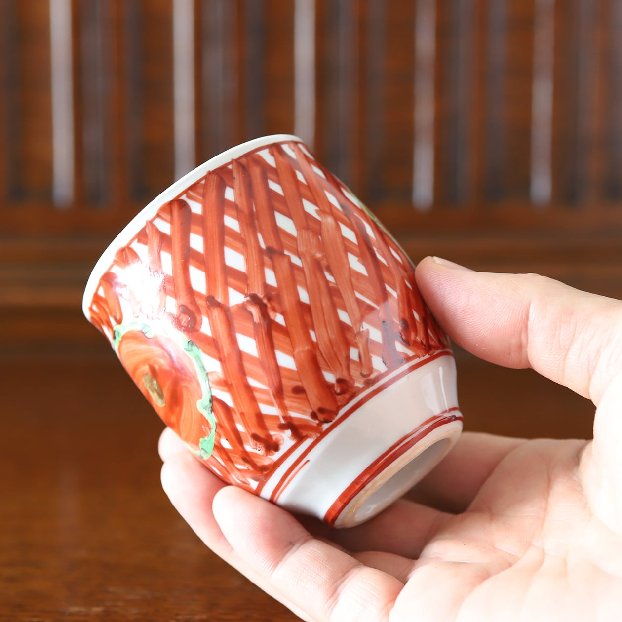 松尾貞一郎 作 有田焼 貞土窯 湯呑(赤絵地紋)|No,250205-A2