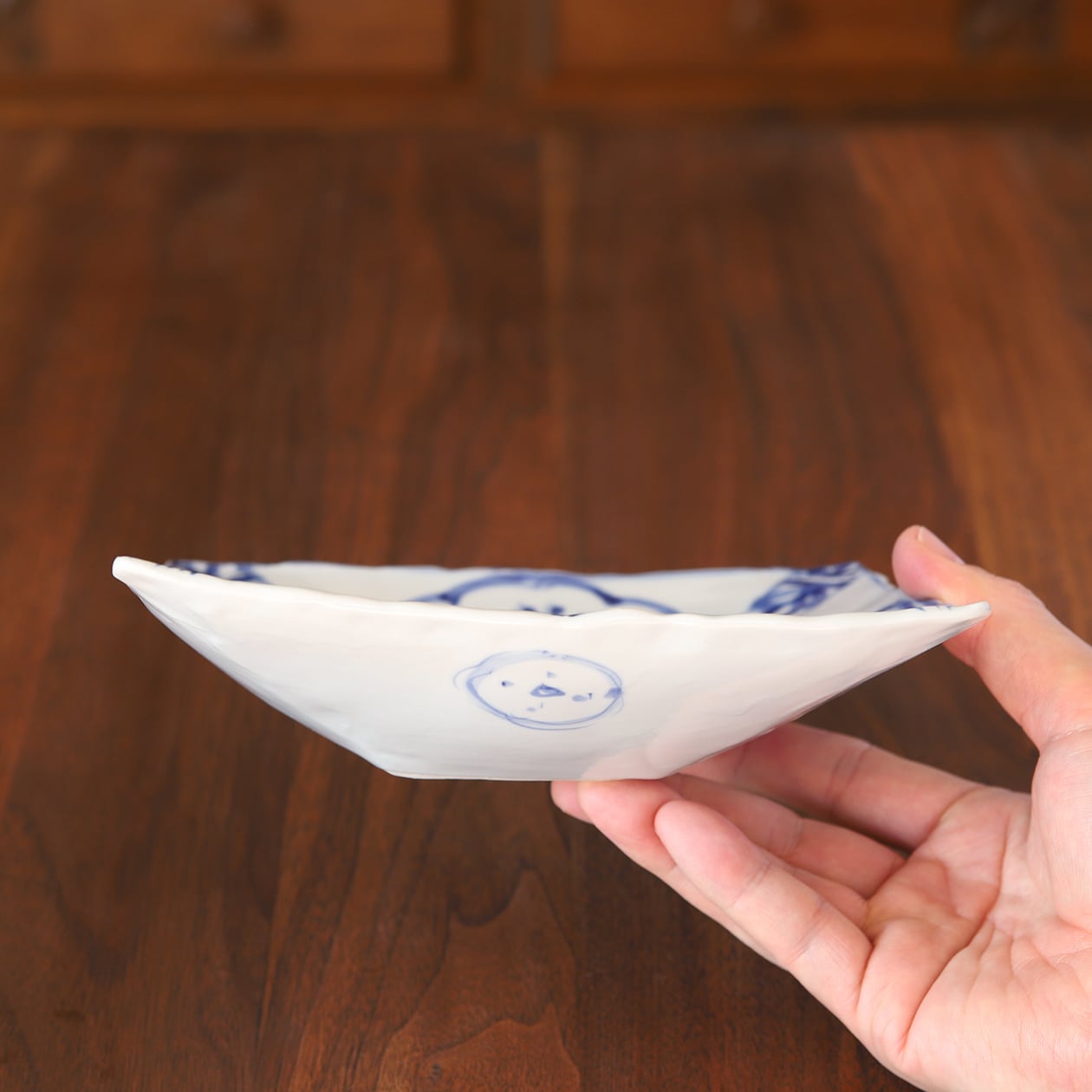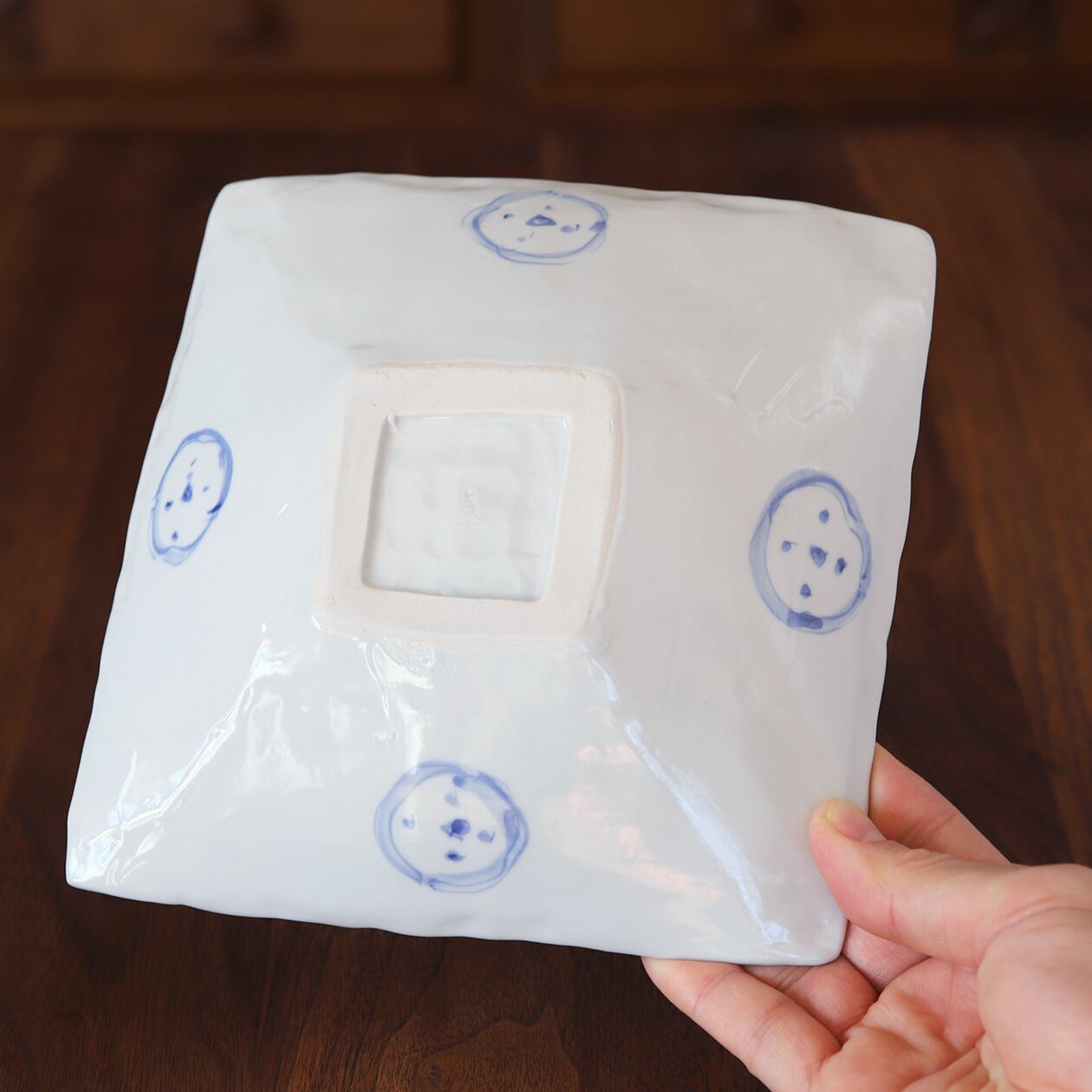 松尾貞一郎さんが手掛ける「6寸角鉢」は、貞土窯の伝統を受け継ぐ染付技法によって描かれた芙蓉手(ふようで)文様が魅力の一品です。