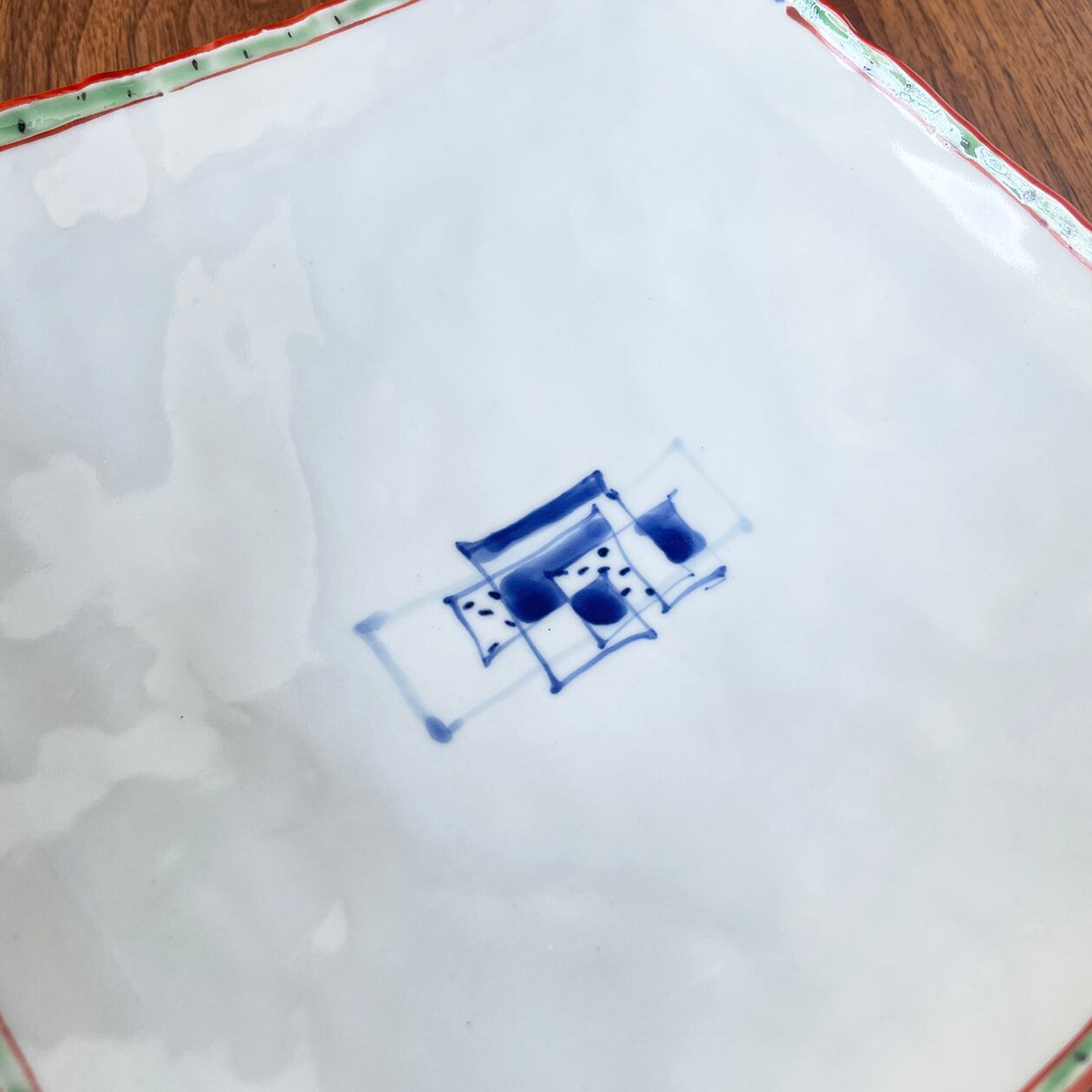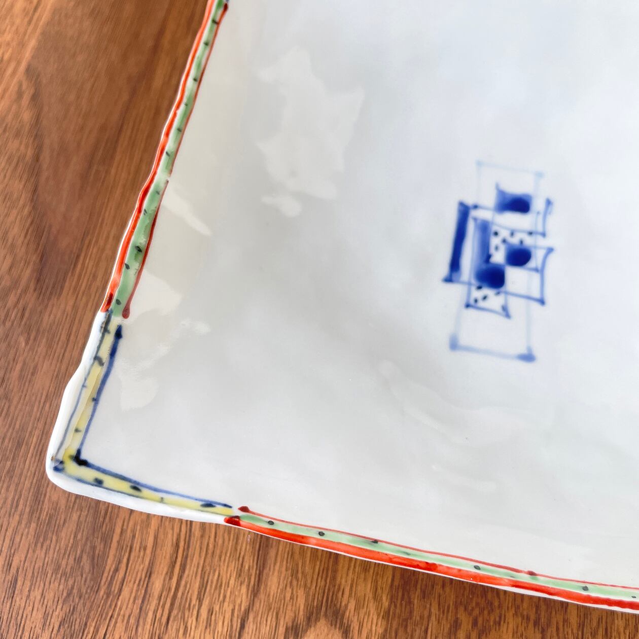松尾貞一郎 作 有田焼 貞土窯 6寸角鉢(渕色絵幾何紋)|No,250619-13