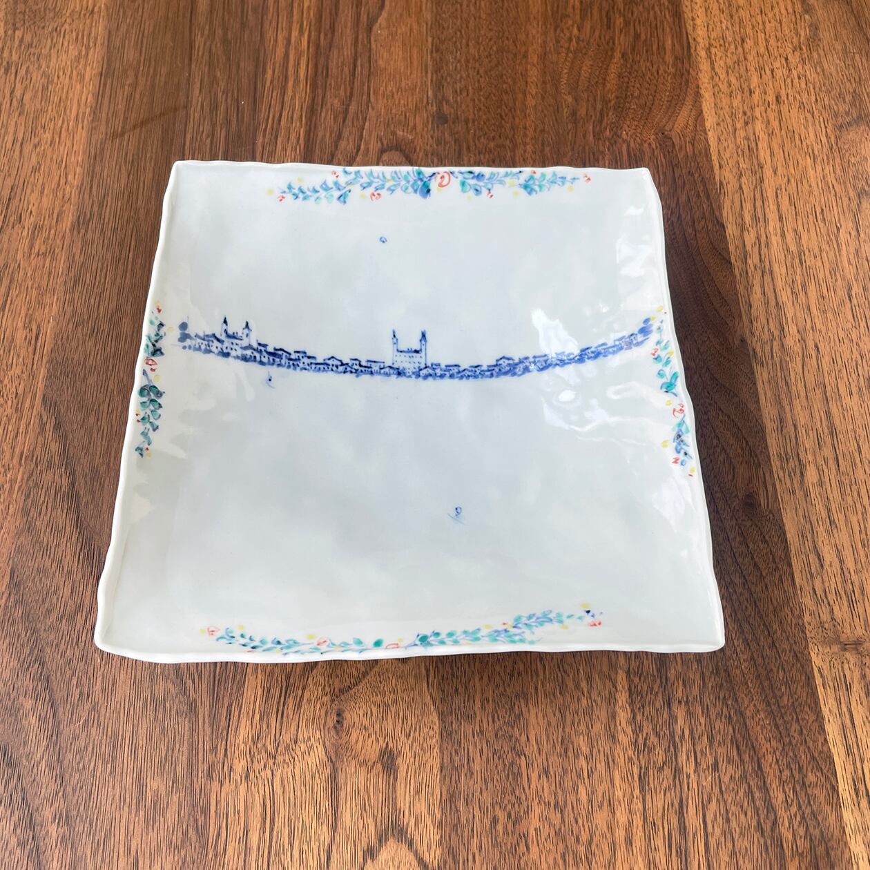 「 6寸角鉢(色絵唐草湖畔街並み図No,250619-21」