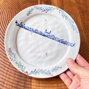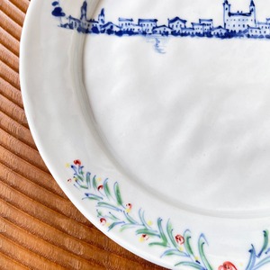 「 20cmリムプレート| 色絵花唐草街並み図 」 No,250826-11