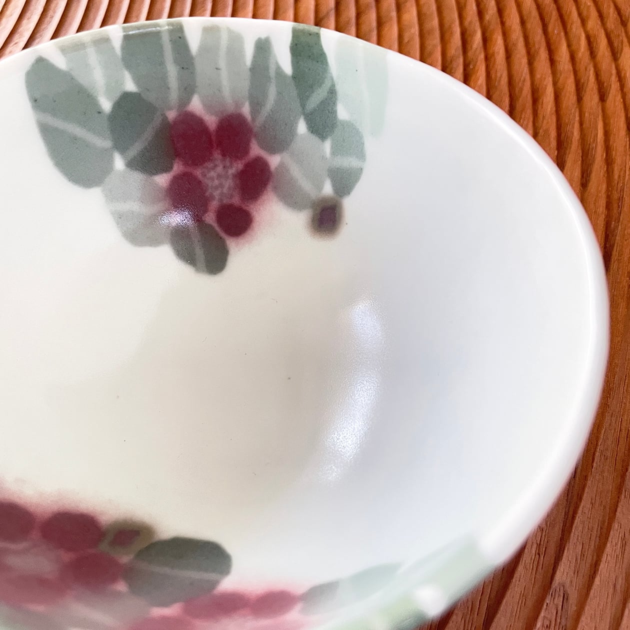 有田焼・艸窯(そうがま)の草場勇次さん・奈美子さんが手掛ける「椿飯碗」です。