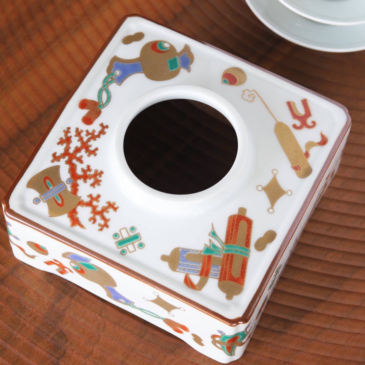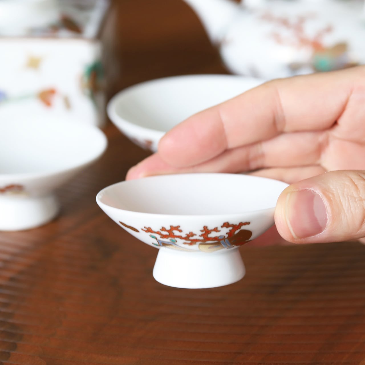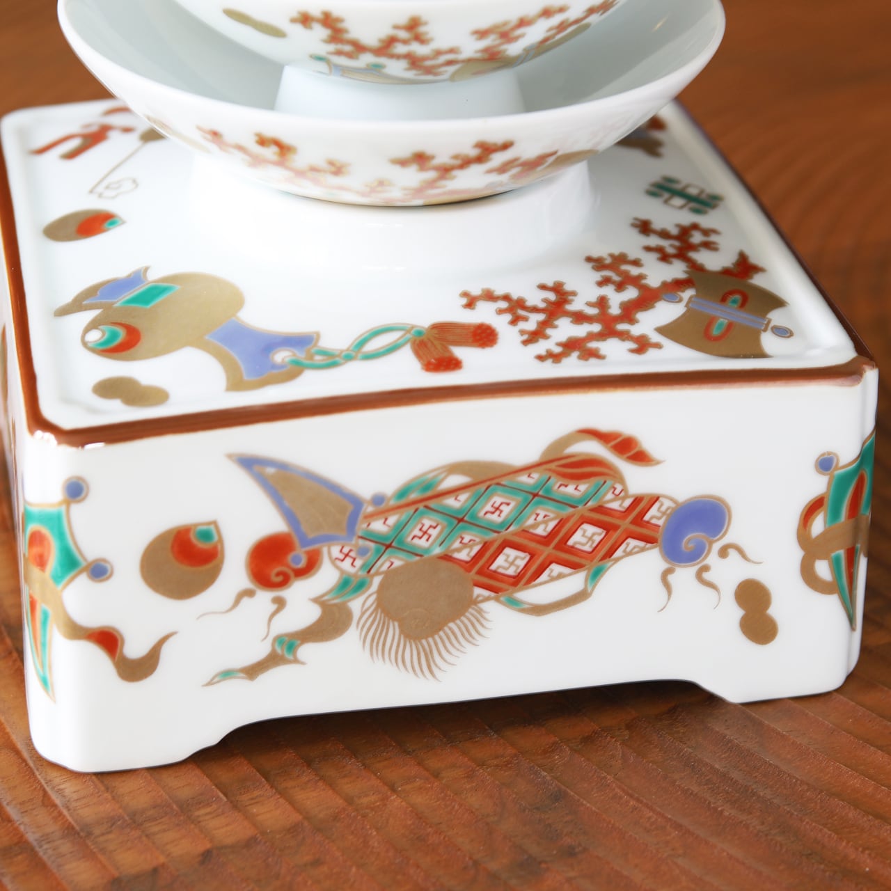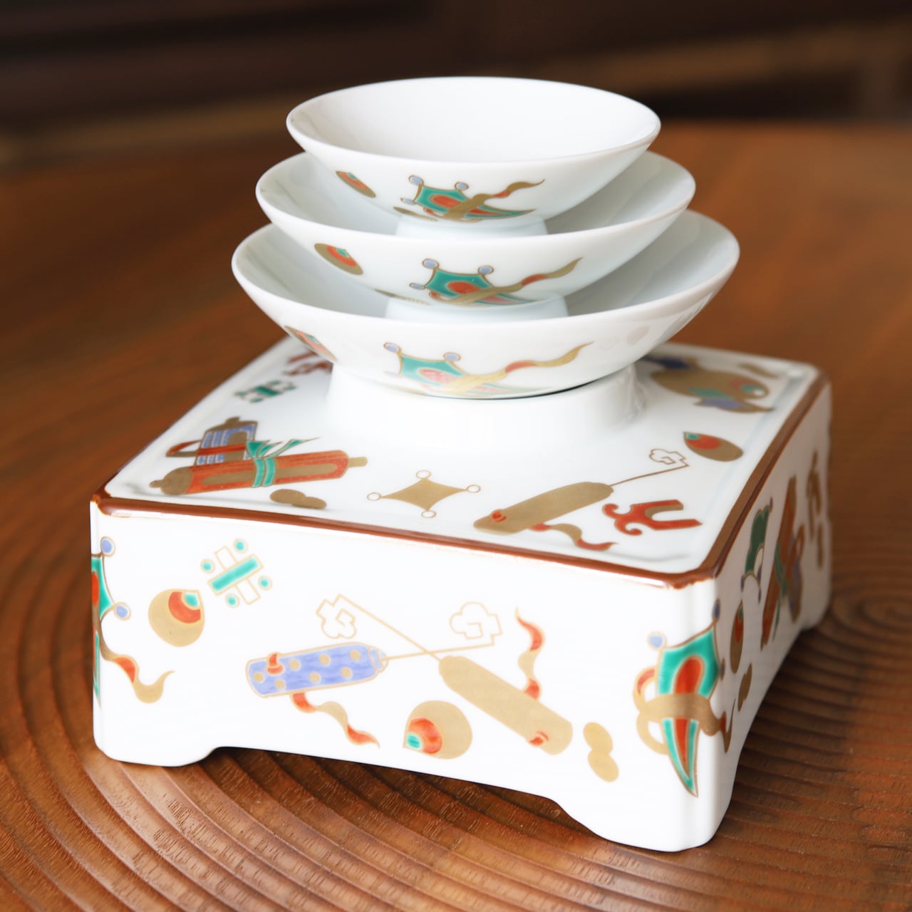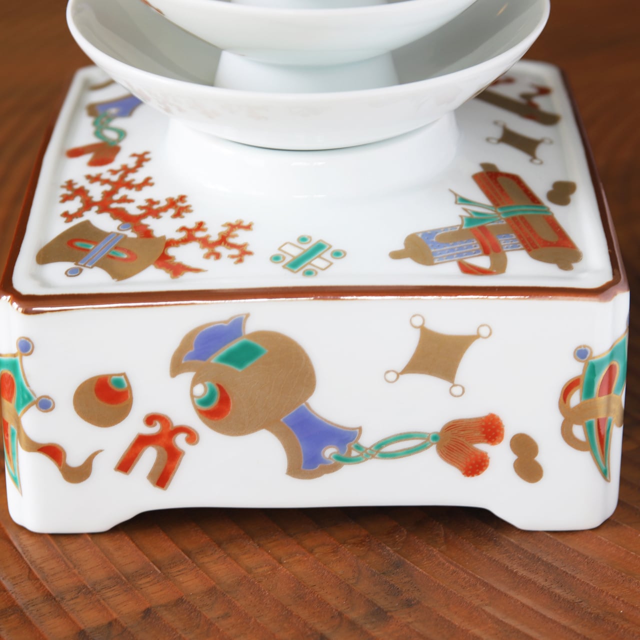 有田焼・其泉窯が丁寧に仕上げた「宝尽くし屠蘇器」。