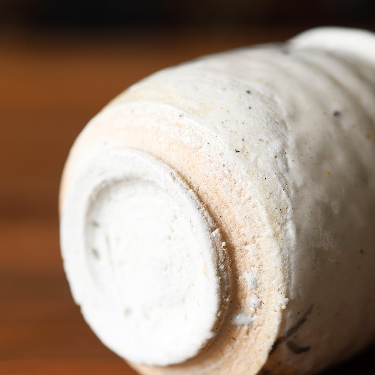 表面の白磁は、泉山磁石の持つ柔らかい白さが感じられ、均一ではない微妙な凹凸や釉の動きが、光の当たり方で豊かな表情を生み出します。一般的な磁器の“つるり”とした質感とは異なり、ほんの少しざらりとした肌合いで、手の中に土のぬくもりのような温かさを伝えてくれます。