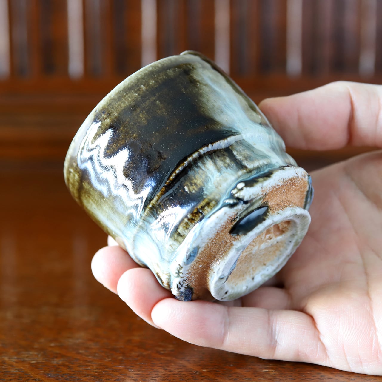 高台まわりには土味が残り、マルティノさんの作品らしい力強さと素朴さが共存しています。ふっくらと立ち上がる胴の形は手に吸い付くように馴染み、飲み口は程よい厚みで口当たりも優しく、毎日の晩酌の時間を心地よいものにしてくれます。