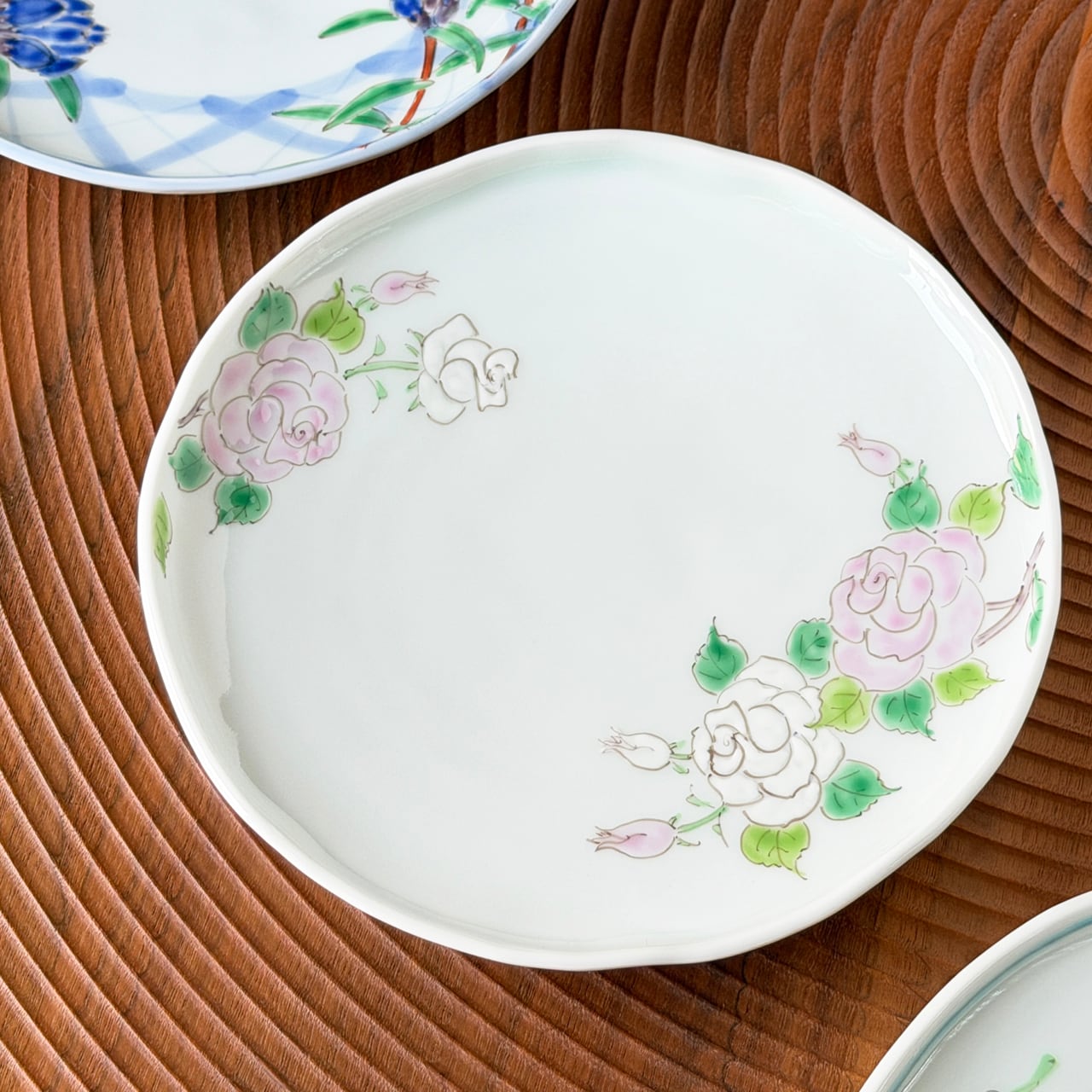 バラ 6寸皿 ― やさしく華やぐ、手描きの薔薇が彩る一枚