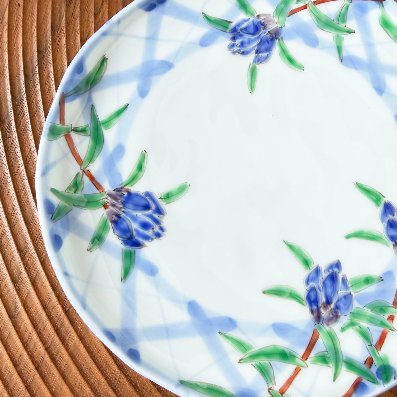 「使わない日はない」と言われるほど汎用性の高い6寸皿に、うつわ藍水さんならではの確かな絵付けが施された「格子リンドウ」。実用性と美しさを兼ね備え、使うほどにその良さを実感できる一枚です。