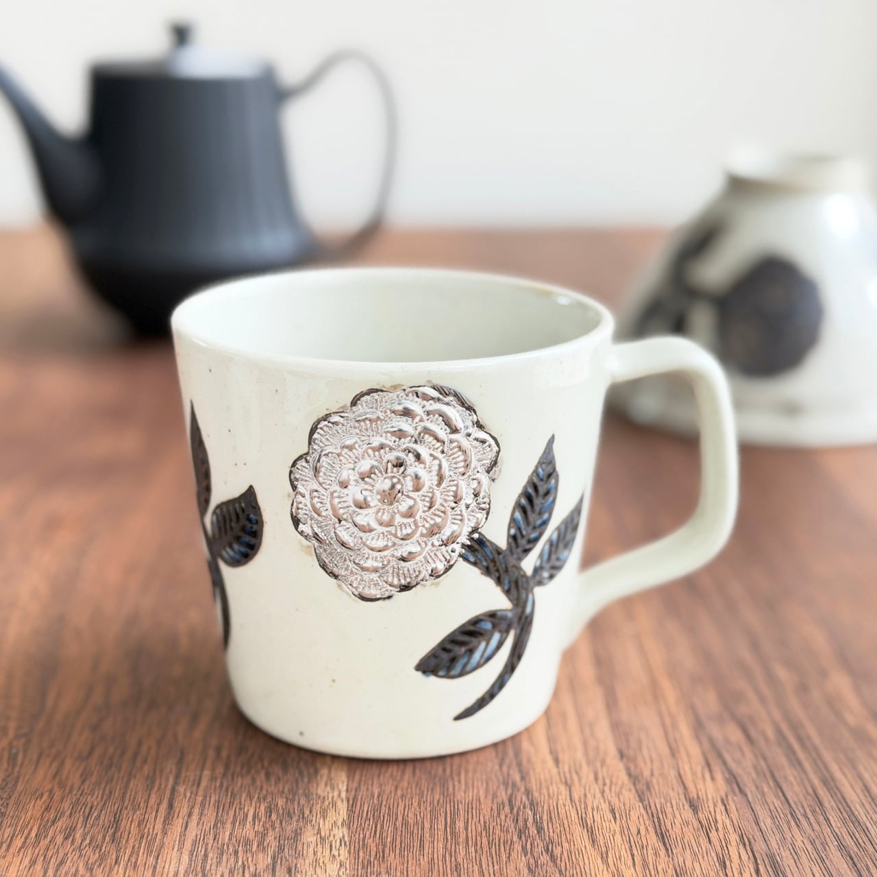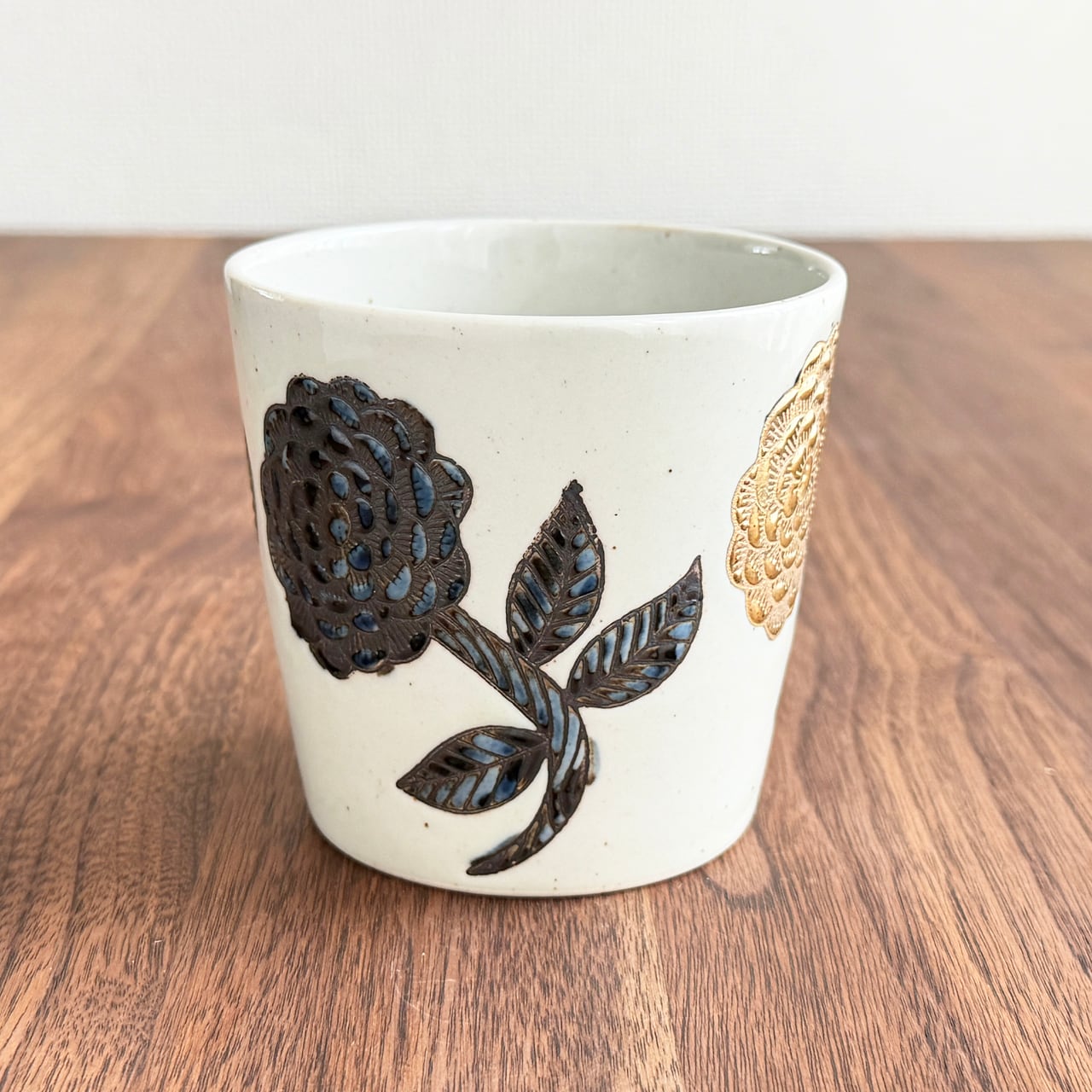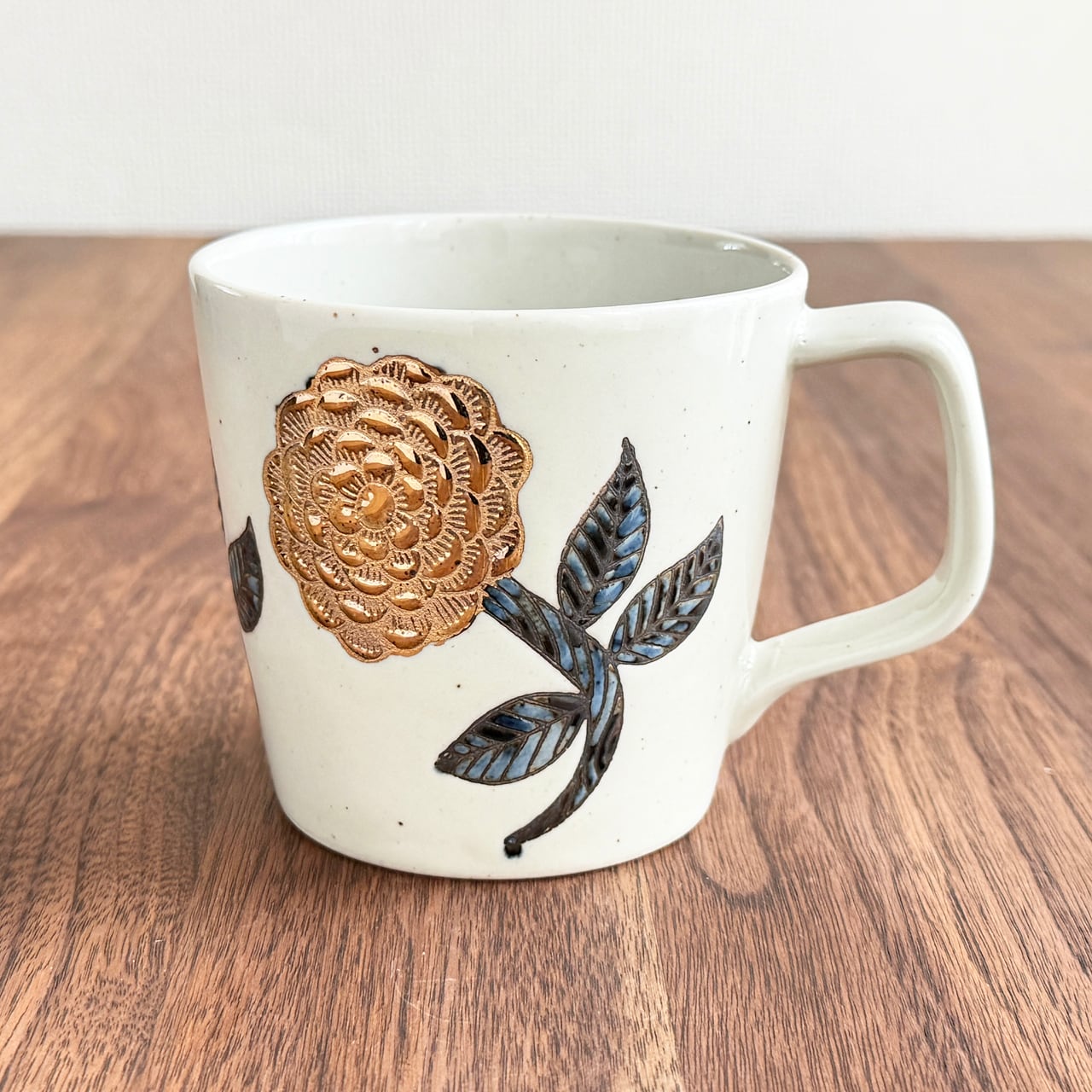 波佐見焼の窯元・菊祥陶器が手がけた「濃ダリア マグカップ(金・銀)」は、日常のひとときを上品に彩るマグカップです。