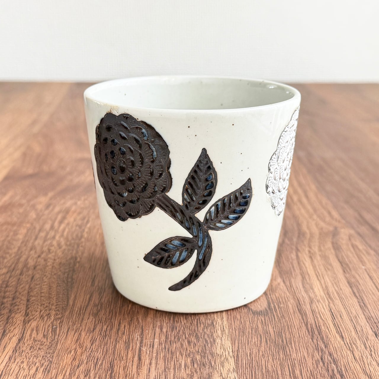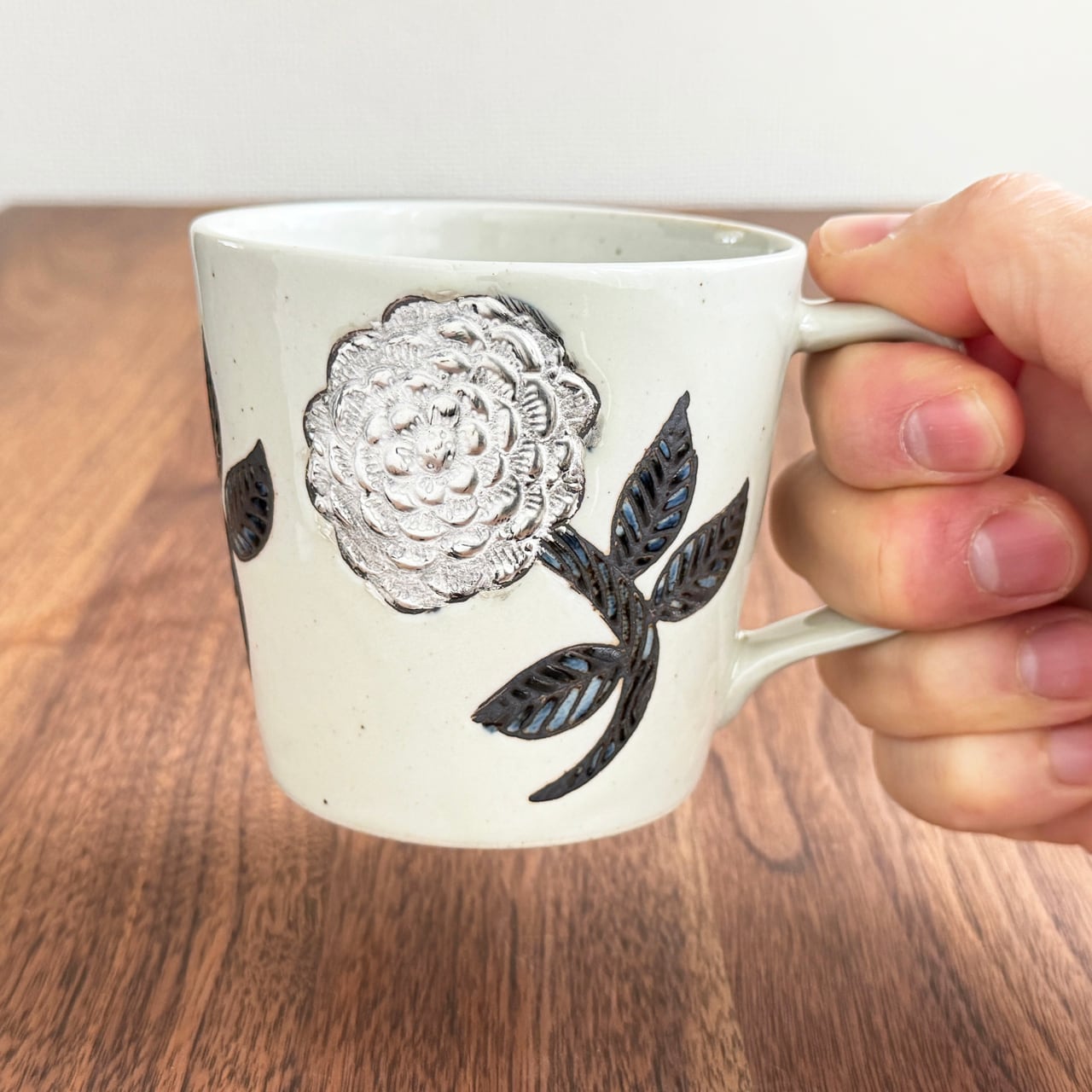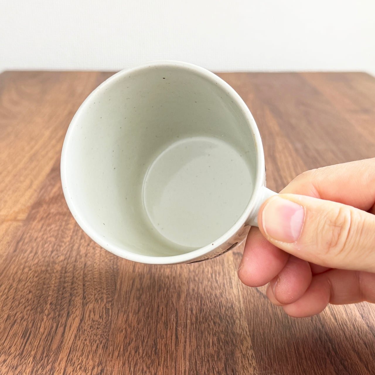 フォルムはすっきりとしながらも安定感があり、手に持った際の収まりが良い設計。口当たりもなめらかで、コーヒーや紅茶はもちろん、カフェオレやスープマグとしても快適にお使いいただけます。持ち手は指が自然に入る形状で、毎日の使用でも疲れにくいのが特徴です。