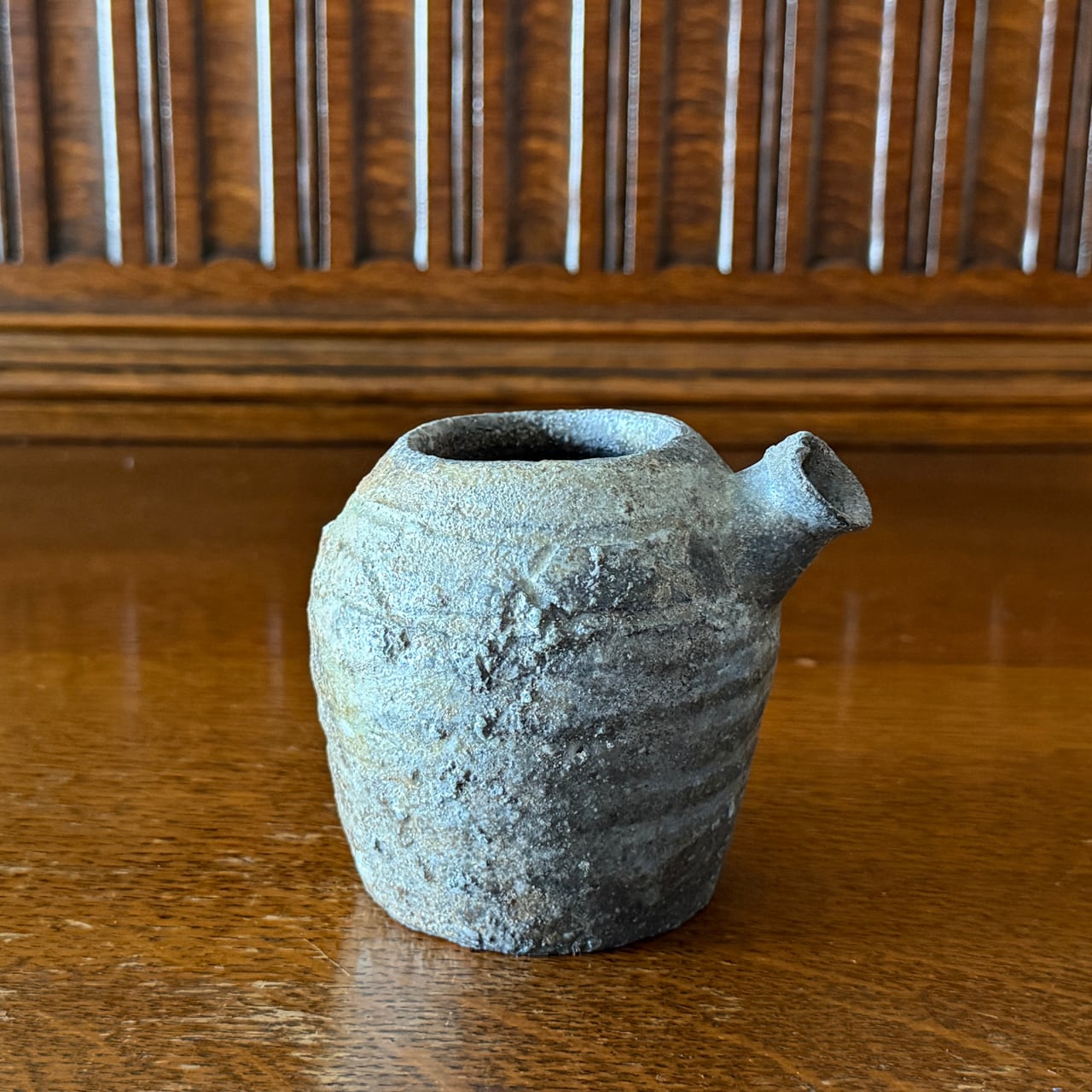そして何より特筆すべきは、注ぎ口の造りの良さ。迫能弘さんの片口作品に共通する美点ですが、本作もまた口切れが非常に良く、液だれしにくい快適な注ぎ心地です。日本酒はもちろん、焼酎や出汁、タレなどにも気持ちよくお使いいただけます。