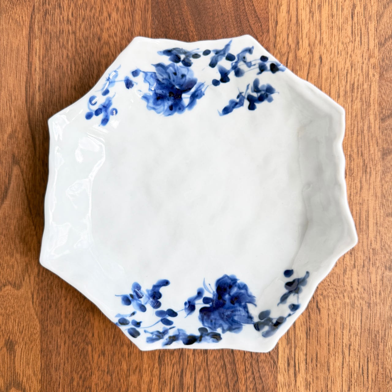 「 八角取り皿 約15cm|染付唐草文 」