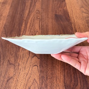 松尾さんの器はすべてロクロや手作業で成形されており、角鉢の造形にもわずかな揺らぎが残ります。