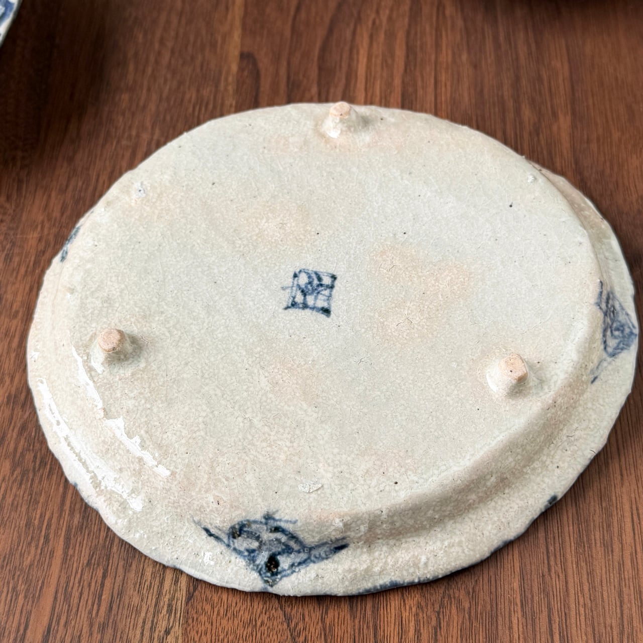 松尾貞一郎 | 三つ足付き丸皿 約17cm(荒土染付兎) 貞土窯・有田
