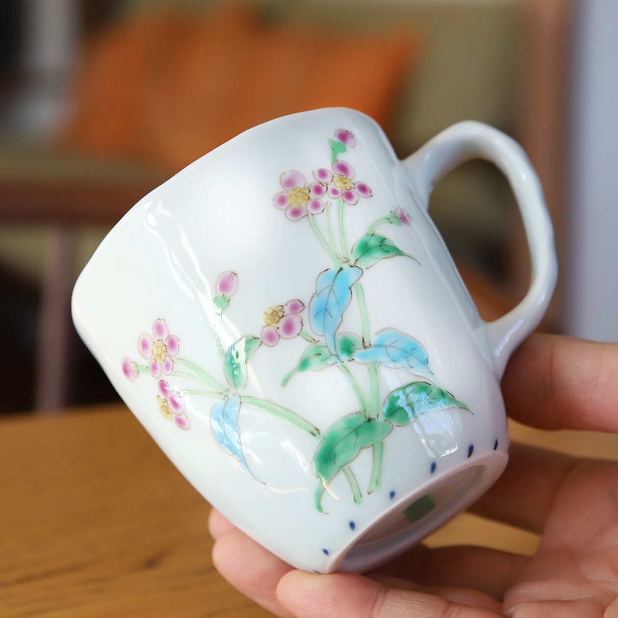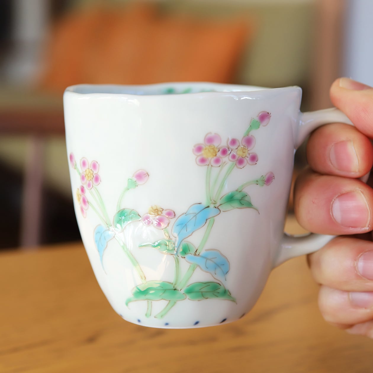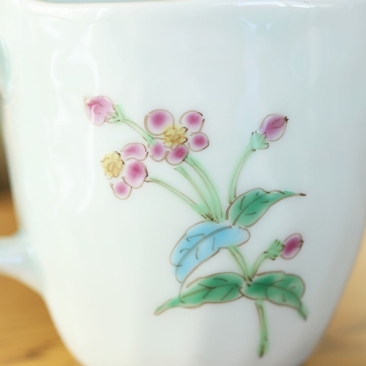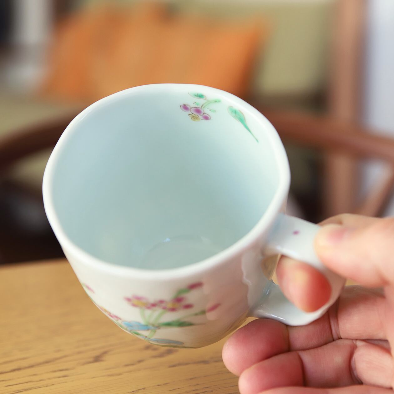 また、磁器ならではの滑らかな口当たりは、飲み物を一層美味しく感じさせてくれます。優しい絵柄も心を和ませてくれ、まさに毎日使いたくなるアイテムです。