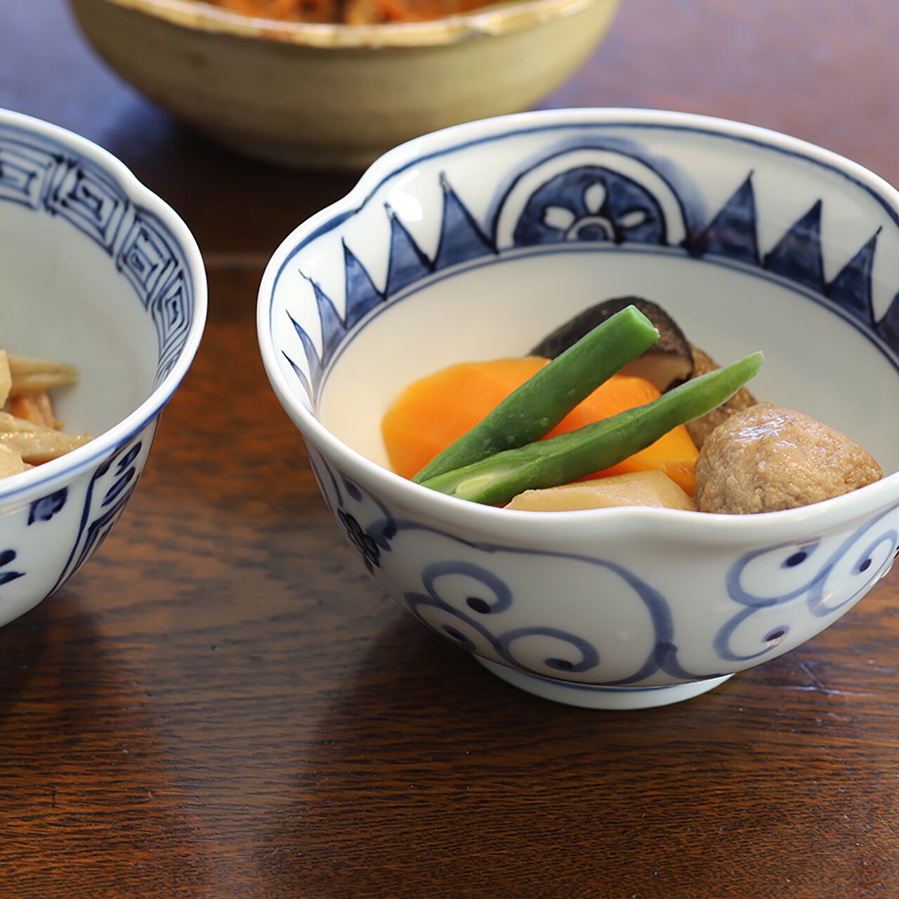 磁器の町・有田町で作陶をしている井手國博さん制作の花唐草三方なぶり小鉢。