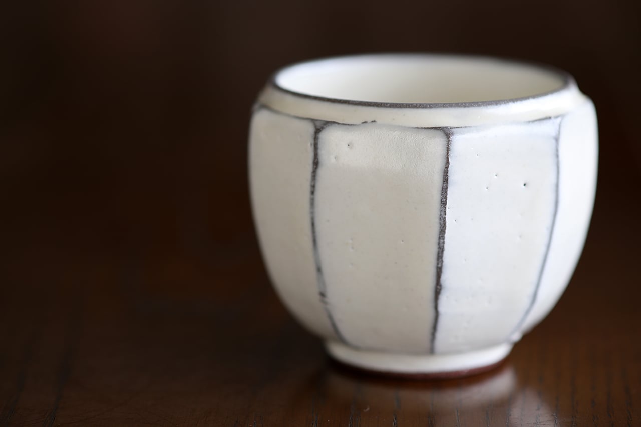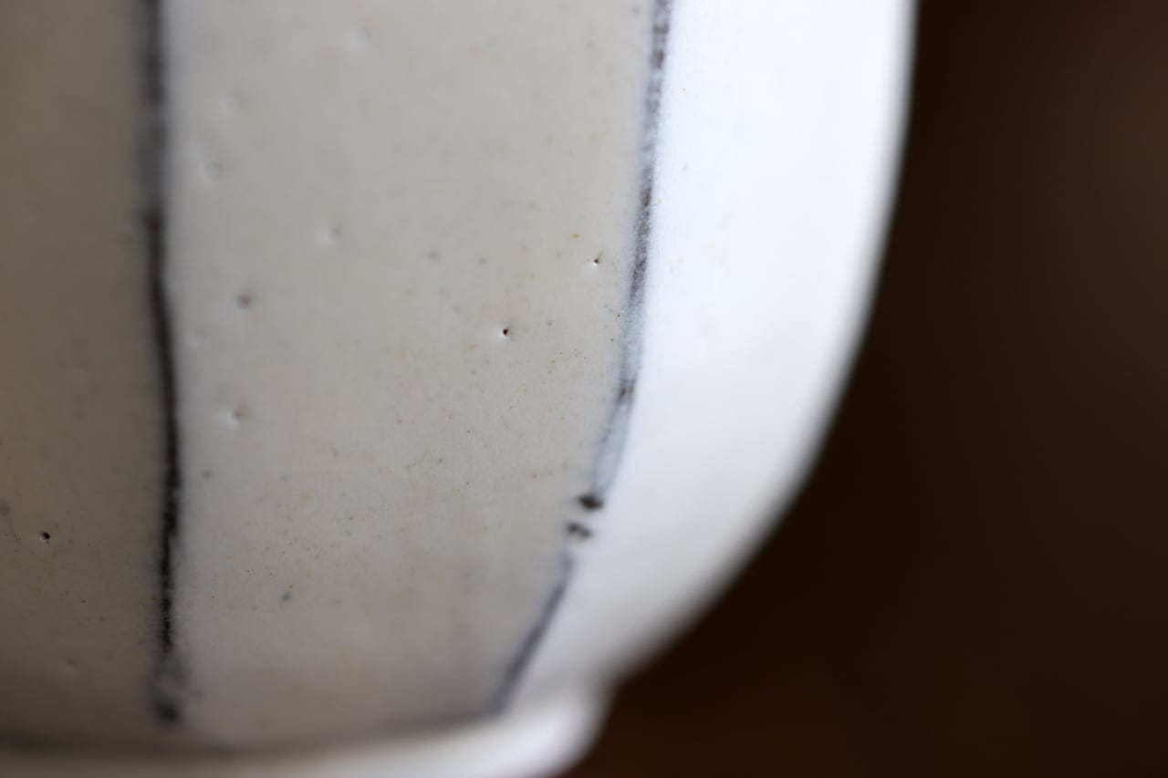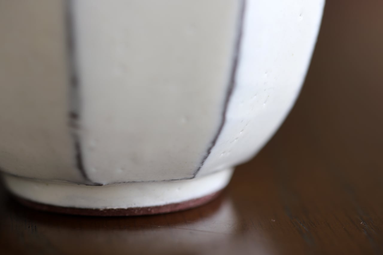 粉引のやさしい白色に、削ぎの技法で施された細やかなテクスチャーが、素朴でありながらも品のある美しい仕上がりです。平型のデザインが使いやすく、小鉢料理用として重宝します。美濃焼の伝統と中島正雄の技が光る、在庫限りの貴重な一品です。