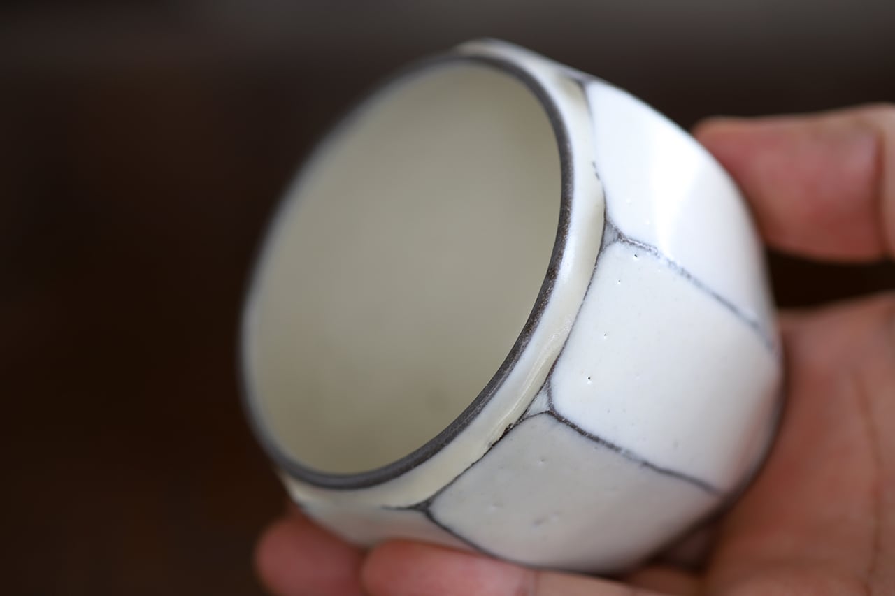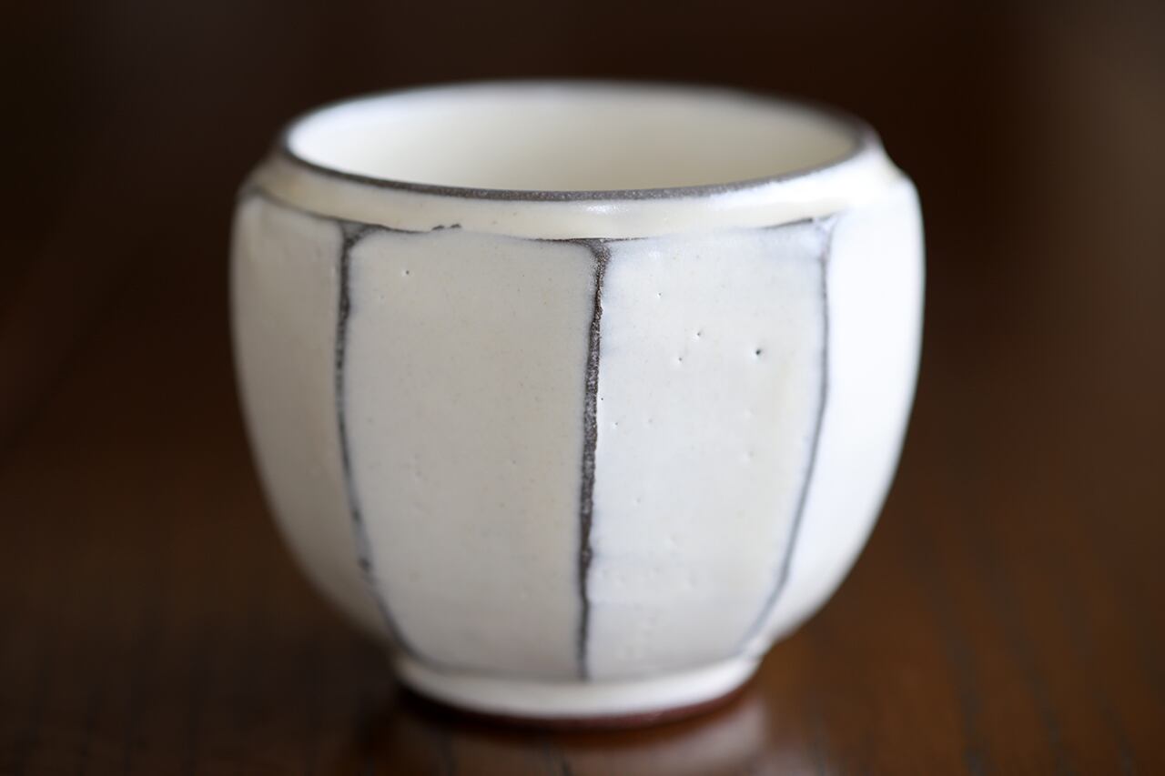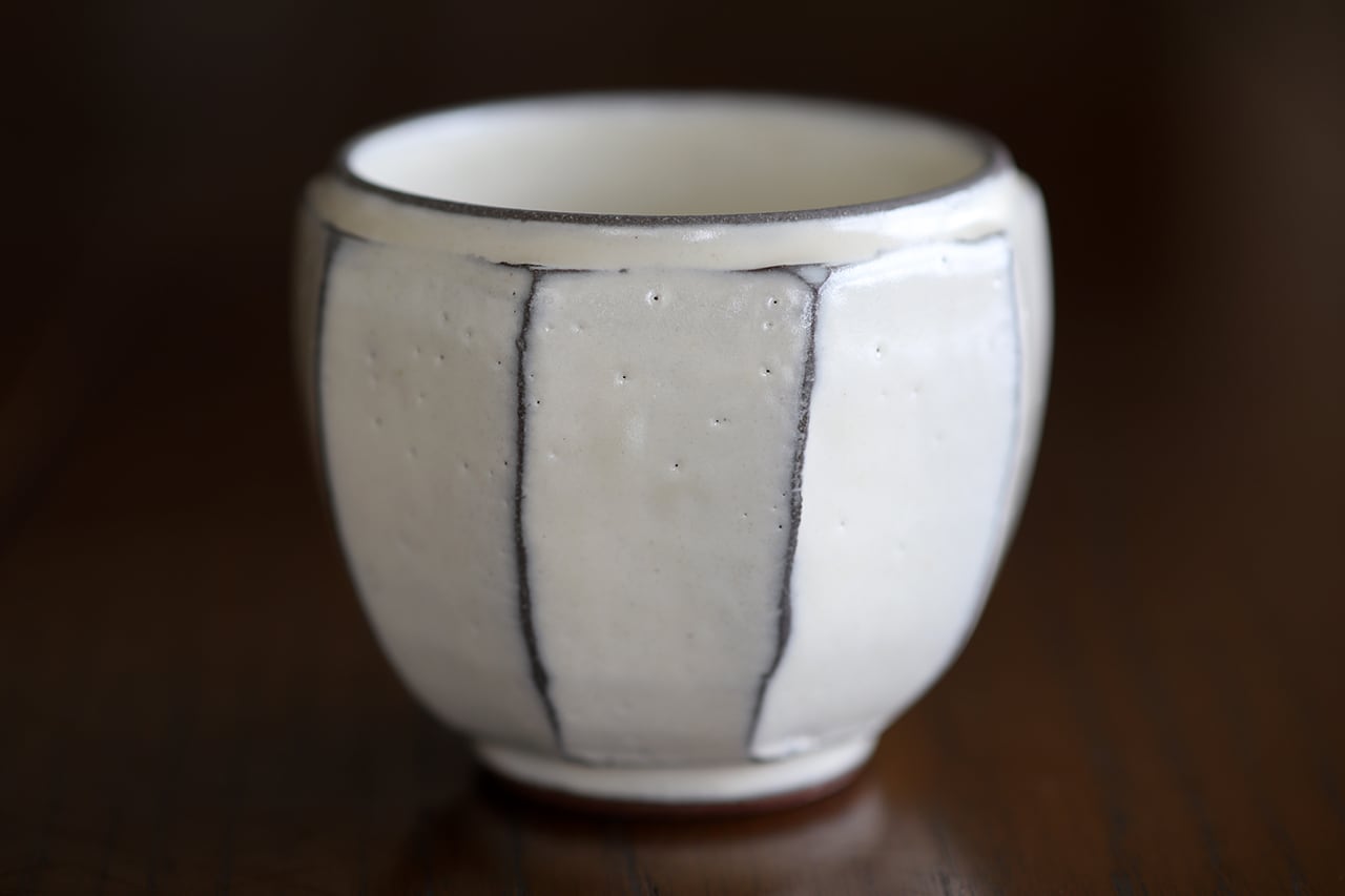 粉引のやさしい白色に、削ぎの技法で施された細やかなテクスチャーが、素朴でありながらも品のある美しい仕上がりです。平型のデザインが使いやすく、小鉢料理用として重宝します。美濃焼の伝統と中島正雄の技が光る、在庫限りの貴重な一品です。
