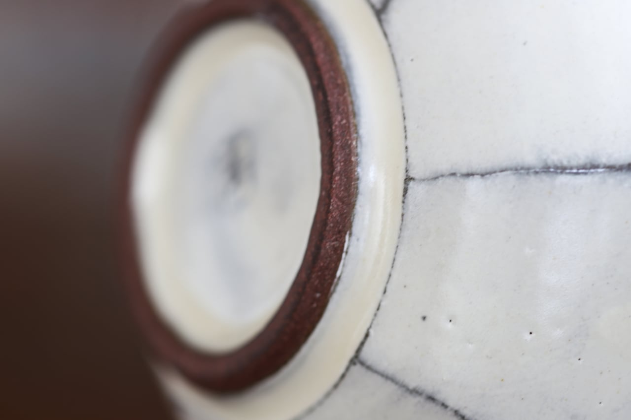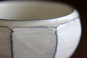 粉引のやさしい白色に、削ぎの技法で施された細やかなテクスチャーが、素朴でありながらも品のある美しい仕上がりです。平型のデザインが使いやすく、小鉢料理用として重宝します。美濃焼の伝統と中島正雄の技が光る、在庫限りの貴重な一品です。
