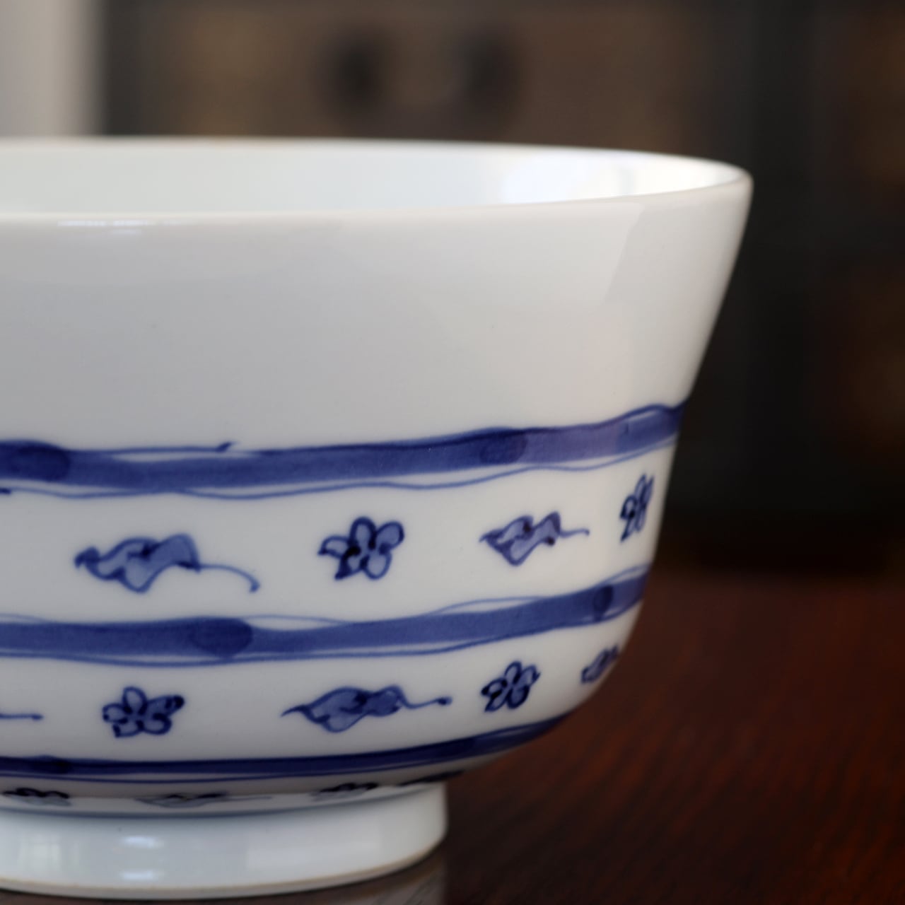 染付の味わいと、手描きでしか味わえないタッチの柔らかさが感じられる杵型丼。