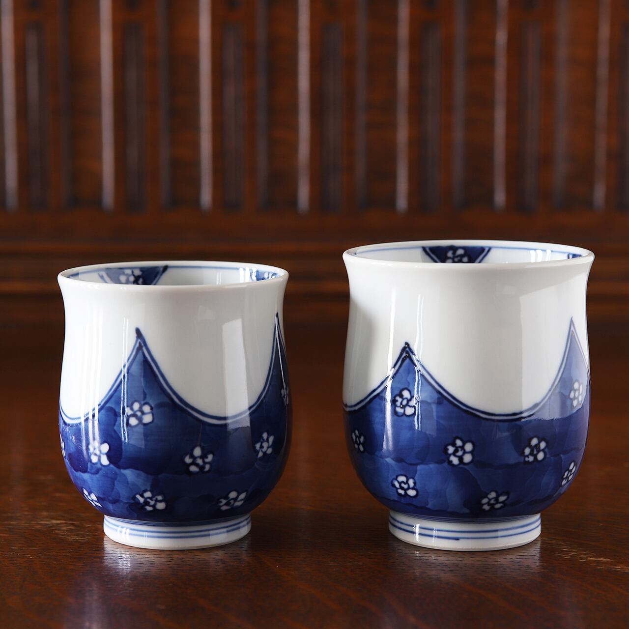 梅四方濃 湯呑(大)(小) 作:井手國博・与志郎窯(有田焼)
