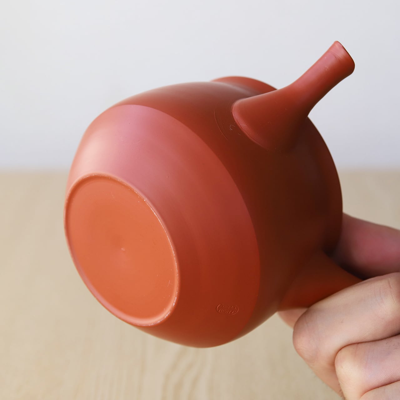 常滑焼の伝統の朱泥の土を使い、手造りした急須の一品。