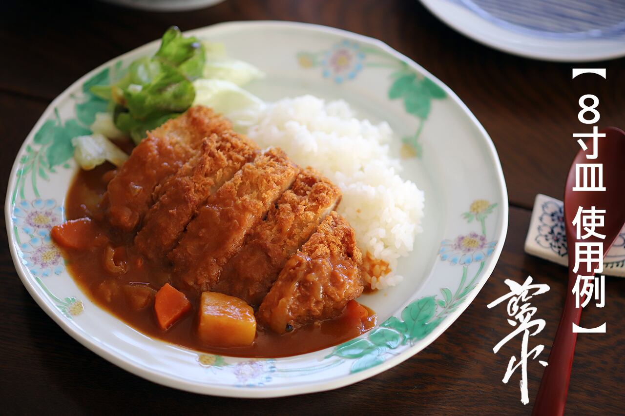 朝から夜まで使い道がとても多いサイズの8寸皿、器の縁の部分が少し肉厚になっていて丈夫に安心して使えます。