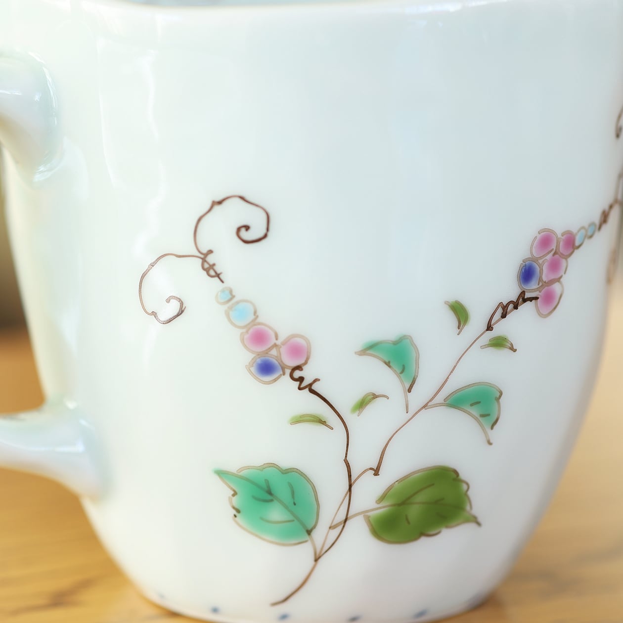 また、磁器ならではの滑らかな口当たりは、飲み物を一層美味しく感じさせてくれます。優しい絵柄も心を和ませてくれ、まさに毎日使いたくなるアイテムです。