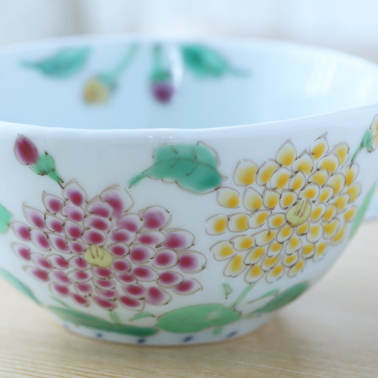 それぞれの花が淡い色調で描かれているため、控えめながらも品のある存在感があり、日常使いの器としても特別な時間を彩る器としてもぴったりです。