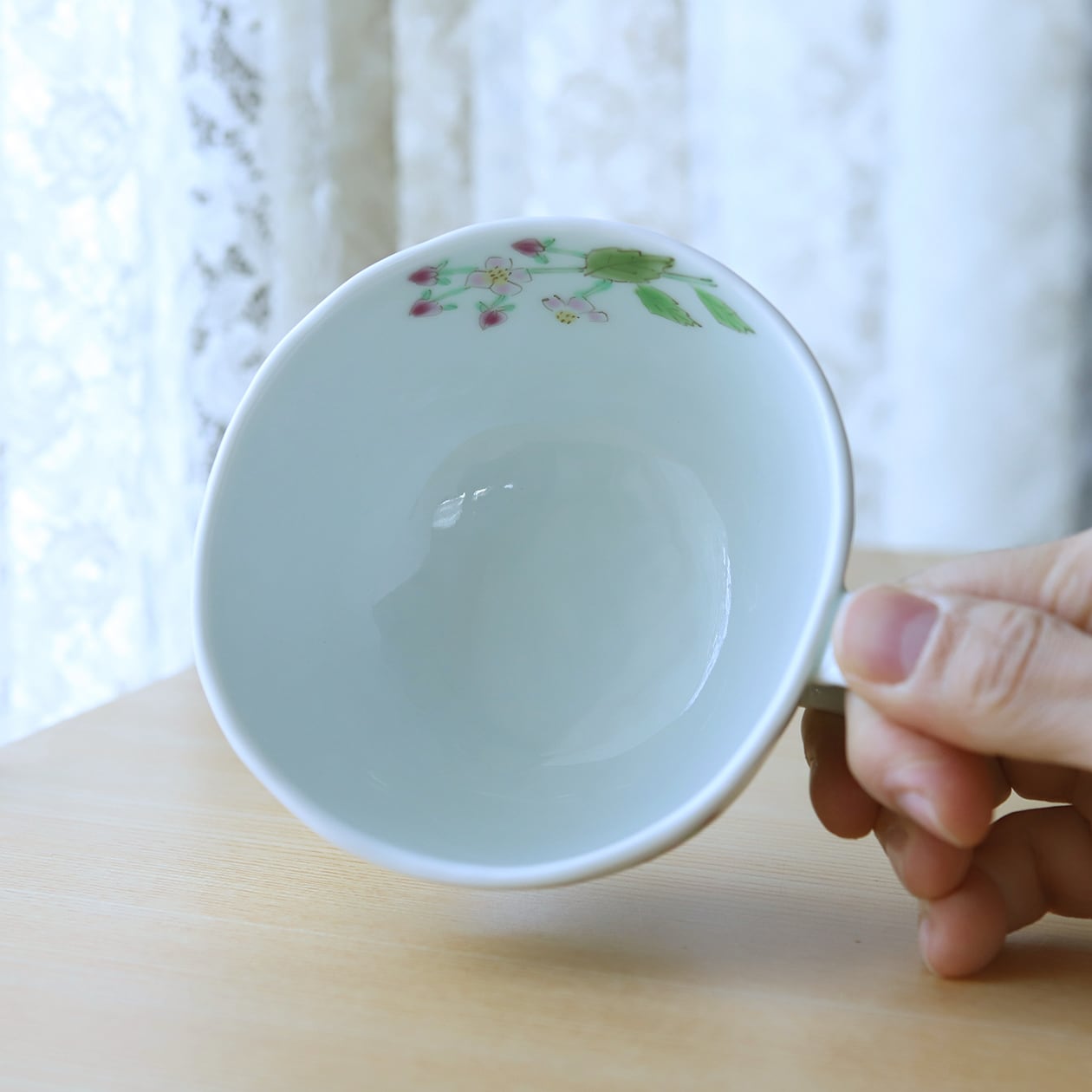 その一つひとつのデザインに込められた絵付けの技術の高さは、細部にまでこだわり抜かれた職人技を物語っています。細い筆を使い、お花の輪郭線を一筆一筆丁寧に描いています。