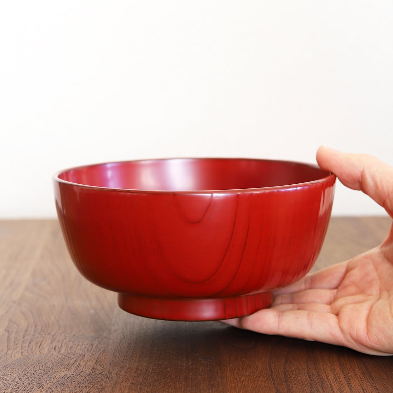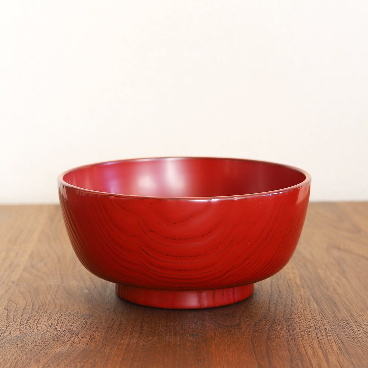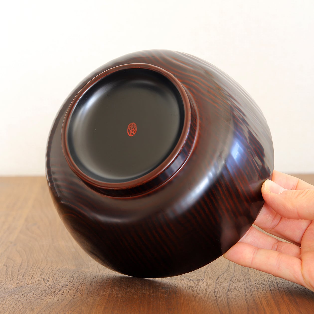 下塗りに黒を施した上に朱を塗り重ねることで、深みのある赤が生まれています。所々黒が透ける仕上がりが魅力的です。